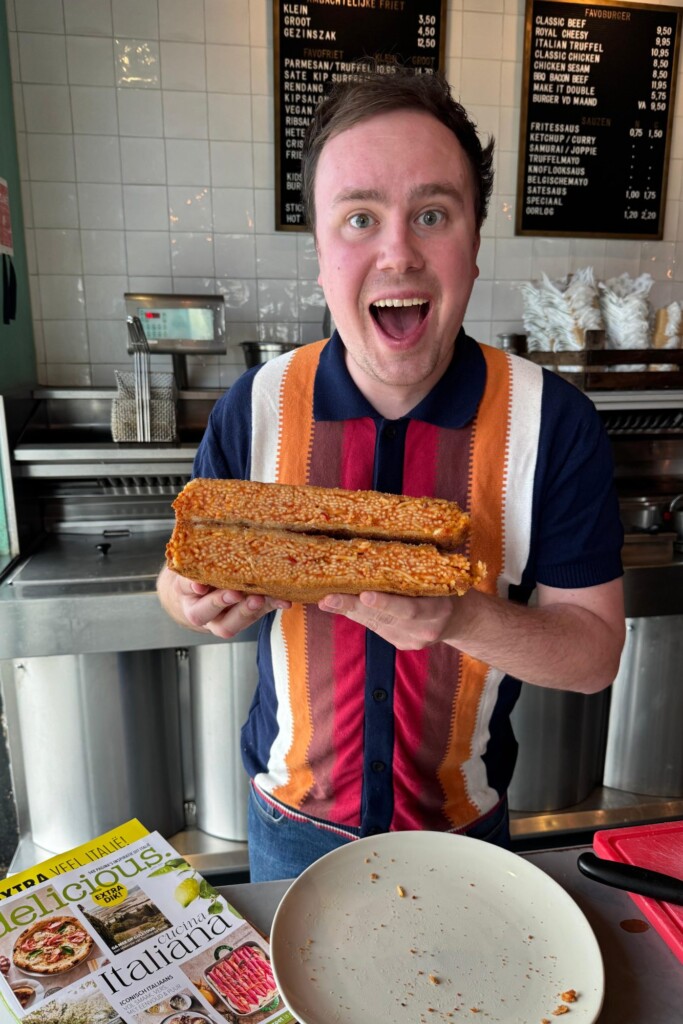 Samen met de enige echte @snackspert gingen we de uitdaging aan en bedachten we deze Hollandse knipoog naar la dolce vita: een dubbel gepaneerde, goudbruin gefrituurde spaghettischijf. Crunchy van buiten, spicy van binnen. En ja, hij is net zo bruut als-ie klinkt.