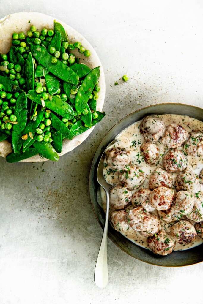 - Schep de gehaktballetjes in een schaal en serveer met de dillegroenten.