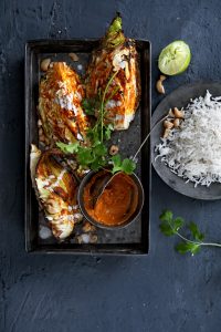 gegrilde witlof op gerookte crème fraîche met appeldressing
