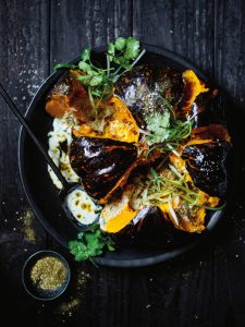 zoete-aardappelpuree met een crunchy kikkererwtentopping