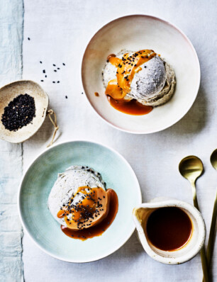 tahini-semifreddo met zaden- en notenkrokant