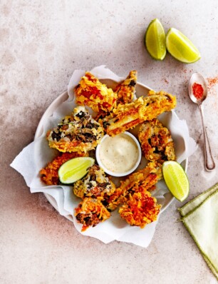 avocado- en pompoen tempura met ponzu-vinaigrette
