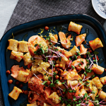 naar receptZet in plaats van spaghetti of tagliatelle ook eens deze gnocchi met kikkererwten op tafel! De harissa-zalmforel, gember en komijn geven pit aan dit heerlijke familiegerecht.Gnocchi is ook erg lekker in Italiaanse minestrone. Hier vind je het recept.