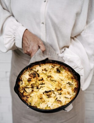 spruitjesgratin met aardpeer & bechamel met kaneel en rozemarijn