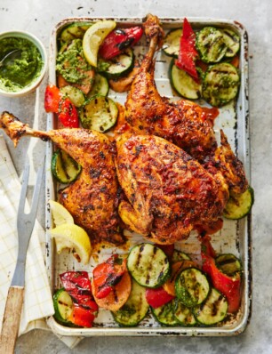 gevlinderde kip van de grill met ‘ndujaboter en salsa verde