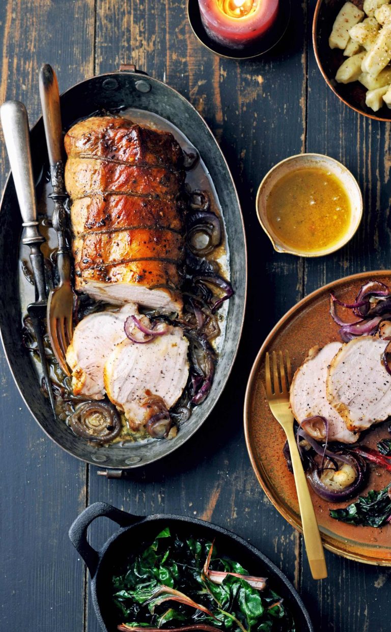 gebraden kalkoen met ancho-chilisaus, citroenige boontjes & zoetzure wortels