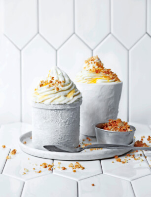 frozen yoghurt met mango en gekaramelliseerde macadamia’s